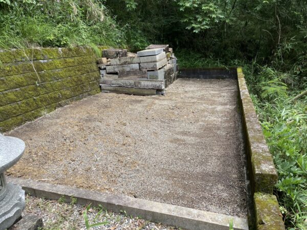 以下の写真のお客様はいずれも岡山市内に個人で土地を所有されているお客様で、両方とも墓じまいをした墓石を自分の土地にまとめておいてくださいというご依頼でした。